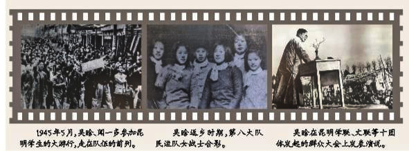 1945年,西南聯(lián)大民主青年同盟(簡稱民青)在吳晗的精心籌劃下成立,并編印《渝風(fēng)》雜志,秘密宣傳馬克思主義,揭露國民黨反動統(tǒng)治。同年12月1日,“一二·一”慘案發(fā)生,吳晗、聞一多始終與學(xué)生站在一起,通過演講、發(fā)表抗議書、宣布罷教等形式聲援學(xué)生運(yùn)動,控訴國民黨軍政當(dāng)局屠殺學(xué)生的暴行。次年7月,得知李公樸、聞一多相繼被害,北上途中的吳晗悲痛不已,連續(xù)發(fā)表文章悼唁聞一多和李公樸,誓死與反動派斗爭到底。