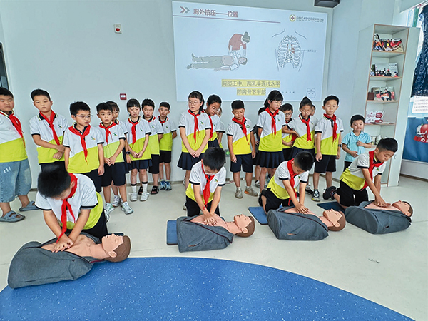 現(xiàn)場,三十多名來自香山小學的學生,專注聆聽市紅十字志愿隊隊長程青梅講解急救知識。程青梅通過模擬人偶,現(xiàn)場示范海姆立克急救法的標準動作,并用生動易懂的語言將專業(yè)技能轉(zhuǎn)化為孩子們易于理解的內(nèi)容。隨后,孩子們認真模仿、互相練習,積極動手實踐,通過互動問答與模擬演練,全面掌握基本急救技巧。(龔盈盈)