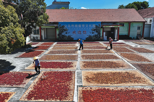 南蜜棗是“義烏三寶”之一。近年來,在市農(nóng)技推廣服務(wù)部門的牽頭下,義烏大棗(南蜜棗材料)種植規(guī)模不斷擴大,目前全市種植面積約6000畝。我市已形成集義烏大棗種植、加工、銷售一體化發(fā)展的格局,同時借力電商拓展南蜜棗銷售渠道,帶動周邊村民增收致富。(呂斌)