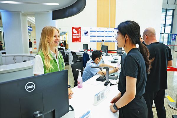 就連就醫(yī)這件大事,在義烏也變得格外讓人安心。浙大四院的門診大廳里,敘利亞留學生李一伊穿著綠馬甲,熱情地為外籍患者指引方向。有次一位埃及商人看不懂檢查單,她耐心地逐句翻譯,還幫忙預約醫(yī)生。俄羅斯醫(yī)學生林夕陽則喜歡幫老人操作自助掛號機,老人們常拉著她的手說“這姑娘比自家孫女還親”。醫(yī)院里的國際門診、外籍醫(yī)生,還有能直接用護照掛號的便利,讓每一位外籍人士都能感受到貼心的關懷。