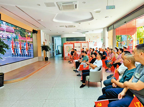 當(dāng)日上午,稠城街道繡湖社區(qū)黨群服務(wù)中心一樓大廳內(nèi)紅旗飄揚(yáng),來自轄區(qū)的居民代表、黨員代表、退役軍人代表、教師代表和學(xué)生代表等50余人齊聚一堂,共同收看大會(huì)直播。大會(huì)結(jié)束后,大家紛紛暢談感想。退役軍人代表表示要繼續(xù)發(fā)揮余熱,為社區(qū)建設(shè)貢獻(xiàn)力量;教師代表表示要將今天的感悟融入課堂教學(xué),引導(dǎo)學(xué)生銘記歷史、珍惜和平;居民代表分享了對(duì)社區(qū)美好生活的感受。社區(qū)黨委書記龔志成感慨道:“閱兵場(chǎng)面震撼,令人振奮!讓我更加深刻地認(rèn)識(shí)到,要牢記歷史、珍惜和平,狠抓當(dāng)前、奮發(fā)圖強(qiáng)。我將立足本職工作,把這份激情帶到基層黨建工作中,推動(dòng)黨組織更好地服務(wù)群眾、凝聚人心?!?/div>