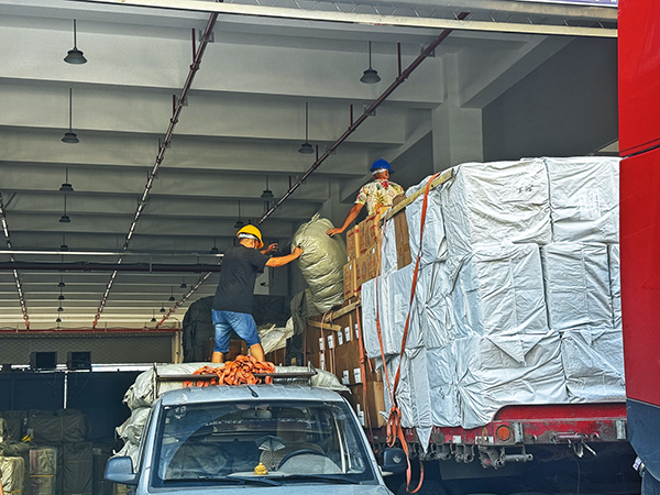 裝卸作業(yè)通常需要兩人協(xié)作:一人站在貨車上,將貨物逐件搬至貨車邊緣;另一人則在車下,負(fù)責(zé)接應(yīng)并將貨物轉(zhuǎn)運(yùn)至指定位置。在付師傅的幫助下,我手腳并用,顫顫巍巍地爬上了貨車。起初我看每件貨物的體積并不大,以為重量應(yīng)該不重,可一提才發(fā)現(xiàn),遠(yuǎn)沒有想象中那般輕松。付師傅告訴我,這批貨主要是刀叉勺等餐具,看似小巧,實(shí)則沉重,每件約15公斤,有些大件甚至超過百斤。
