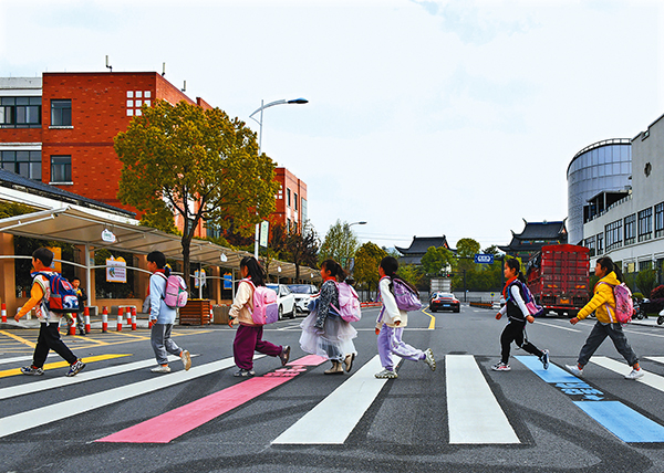 在這兩天的清晨上學(xué)、傍晚放學(xué)時段,記者實(shí)地走訪發(fā)現(xiàn):西江小學(xué)和宋慶齡幼兒園之間的路面鋪設(shè)了色彩鮮明的兒童專用斑馬線,提升識別度與通行安全感;在上述兩所學(xué)校周邊因地制宜開辟了“接送微空間”,設(shè)置休息座、兒童繪畫墻,緩解高峰擁堵的同時營造親子互動氛圍;街區(qū)轉(zhuǎn)角處的導(dǎo)引牌高度適配6—12歲兒童視線,圖文并茂,親切易懂……這些看似“小”的細(xì)節(jié),恰恰是社區(qū)治理智慧的體現(xiàn)。
