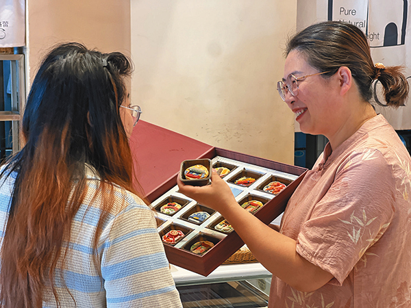這份獨特的“義烏心意”迅速得到了回應(yīng)。從廣東來義烏經(jīng)商的許女士特意趕來訂貨,要把月餅寄回老家給父母:“太有義烏特色了,讓家人也嘗嘗我奮斗的這座城市是什么‘味道’。”“看到大家拿到月餅時驚喜的表情,尤其是新老義烏人那份認(rèn)同感,我覺得一切都值了?!备祦喦偻嘎?,首批幾十套月餅售出后反饋很好,認(rèn)為這套月餅“義烏味”十足。但由于模具壓制工藝復(fù)雜,圖案精細(xì),傅亞琴團(tuán)隊一天只能手工制作約20套。目前,這套飽含匠心和家鄉(xiāng)情的月餅設(shè)計已提交專利申請。