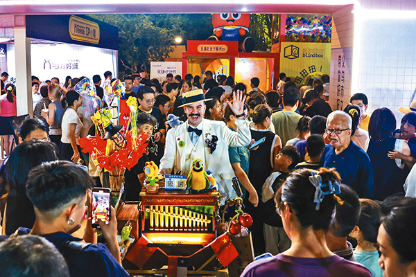 當(dāng)晚,高蹺戲劇巡演、移動(dòng)小酒館等快閃表演驚艷登場(chǎng),瞬間點(diǎn)燃了現(xiàn)場(chǎng)氛圍,掀起一波又一波小高潮。不少觀眾跟隨著巡演隊(duì)伍,邊走邊逛,沉浸在歡樂的氛圍中。精彩的表演與誘人的美食相得益彰,為市民游客帶來全方位的沉浸式體驗(yàn)。