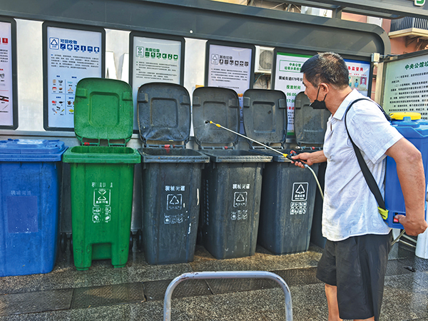 義駕山社區(qū)探索“人防+技防”相結(jié)合的防控模式。由社區(qū)干部與專業(yè)消殺人員組成聯(lián)合小組,深入沿街商鋪和居民家中,仔細(xì)檢查清理陽(yáng)臺(tái)、庭院中的儲(chǔ)水容器,并向居民普及相關(guān)常識(shí),增強(qiáng)群眾參與度。針對(duì)綠化帶、下水道、垃圾桶周邊及各類隱蔽角落,消殺隊(duì)伍采用高效低毒藥劑進(jìn)行全面噴灑。
