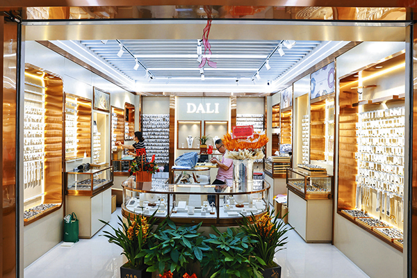 踏入全球數(shù)貿(mào)中心,濃郁的時尚氣息撲面而來。與國際商貿(mào)城一區(qū)不同的是,這里的時尚珠寶商位更顯精致與高端。精心設(shè)計的門面里,琳瑯滿目的飾品一一陳列,在燈光的映襯下熠熠生輝,彰顯著工藝與品位之美。