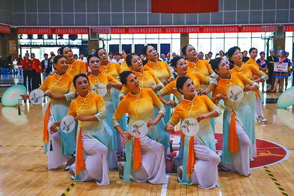 比賽現(xiàn)場(chǎng),氣氛熱烈而溫馨。伴隨著悠揚(yáng)舒緩的樂曲,老人們身著統(tǒng)一服裝,精神矍鑠、步伐整齊。健身球表演《中國(guó)范》《在希望的田野上》,大家動(dòng)作舒展柔和、剛?cè)岵?jì),一招一式盡顯沉穩(wěn)與靈動(dòng);秧歌扇《最美中國(guó)》、廣場(chǎng)舞《采茶舞》、功夫扇《中國(guó)功夫》等輪番上演,老人們舞姿輕快、笑容燦爛,用飽滿的熱情展現(xiàn)新時(shí)代老年人熱愛生活、積極向上的精神風(fēng)貌。剛走下舞臺(tái)的葉豐君阿姨擦著額頭上的汗珠,笑容格外燦爛?!敖∩砬虮硌菁儒憻捚胶庑裕皱憻捜犴g性。”她說,這樣的運(yùn)動(dòng)會(huì)給了老年人展示自我的平臺(tái),更讓他們感受到了實(shí)實(shí)在在的關(guān)懷與溫暖。