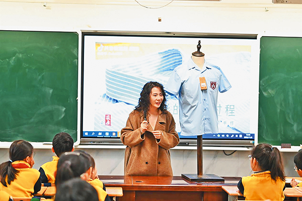 “一件襯衫是如何誕生的?”在身為制版師的家長引導(dǎo)下,學(xué)生們探索了從棉田到成衣的全過程。通過親手觸摸不同面料、了解專業(yè)縫紉設(shè)備,學(xué)生們不僅感受到服裝制作中的科技內(nèi)涵,更體會到每件商品背后凝聚的勞動汗水與科研智慧,“一絲一縷,來之不易”的惜物之情油然而生。