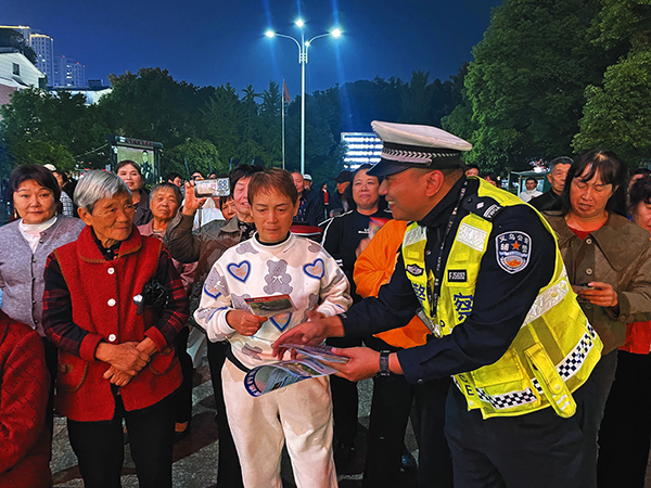 立冬寒意至,關(guān)懷暖人心。近日,市公安局交警大隊江東中隊走進(jìn)商博社區(qū)的戲臺前,開展“關(guān)愛老人 安全出行”主題宣傳活動。