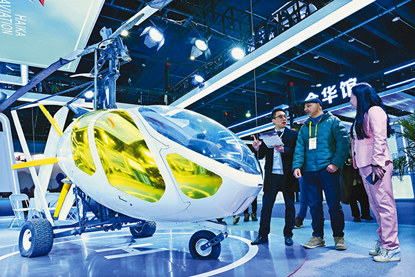 昨日,2025浙江義烏國(guó)際智能裝備博覽會(huì)開(kāi)幕。在博覽會(huì)上,外國(guó)客商正在選購(gòu)新款單翼直升機(jī)。(
