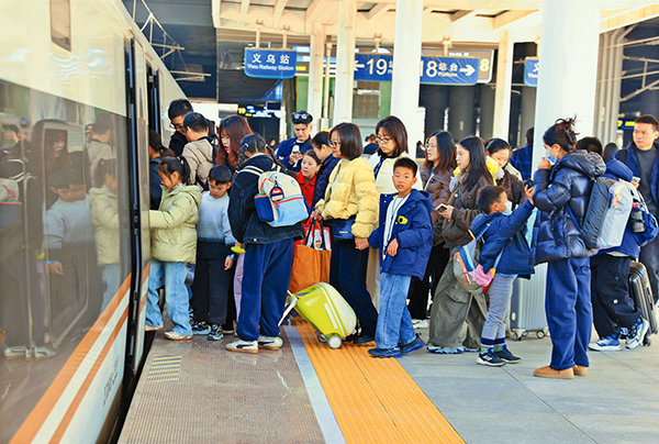鐵路義烏站同樣充滿熱鬧的假期氛圍。候車大廳內(nèi),孩子們的身影隨處可見,親子旅客數(shù)量明顯增多。