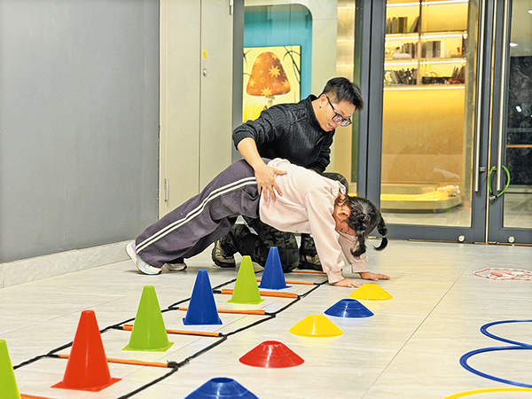 11月21日晚,在江東街道某小區(qū)的室內(nèi)運動館里,小學(xué)一年級學(xué)生吳蒨語在教練的指導(dǎo)下進(jìn)行體能訓(xùn)練。雖然練得滿臉通紅,但她笑著說道:“教練說,我今天做得很到位。”這時,她已連續(xù)上了兩個多月的“上門體育”課程,專業(yè)體育教練會準(zhǔn)時上門,教她跳繩、籃球等各種運動。