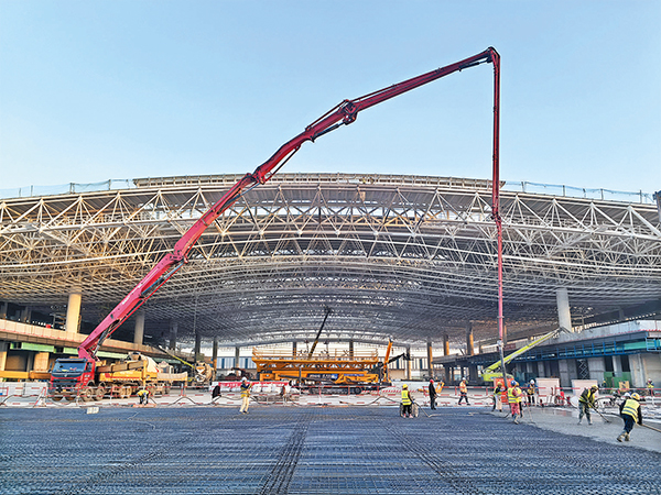 11月28日17時(shí),隨著杭長(zhǎng)高鐵場(chǎng)高架候車層最后一塊樓面混凝土澆筑完成,義烏站高架候車層實(shí)現(xiàn)全面連通,標(biāo)志著歷時(shí)881天的高架候車層主體混凝土工程圓滿收官。