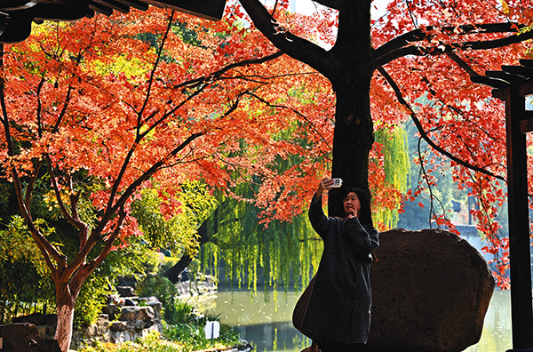12月1日,初冬的義烏市駱賓王公園,迎來四季當中最美的時節(jié)?;鸺t的楓葉、金黃的銀杏林與青磚黛瓦相映成趣,漫步公園,紅黃藍綠,色彩斑斕,如詩如畫。進入12月,五彩繽紛的色彩將義烏城鄉(xiāng)裝扮得愈發(fā)詩意和浪漫。(呂斌)