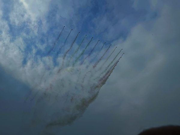 一系列科技項(xiàng)目展演將現(xiàn)場氣氛不斷推向高潮。“希望號”火箭模型點(diǎn)火升空,象征探索啟航;無人機(jī)編隊(duì)隨之升空,以靈動(dòng)的隊(duì)形變換與彩色拉煙,在空中勾勒出“義”字等圖案;宇航員人形無人機(jī)在空中漫步、穿越機(jī)環(huán)形飛行撞氣球,呈現(xiàn)出一場兼具創(chuàng)意與技術(shù)的視覺展示,生動(dòng)詮釋了科技與青春的融合。