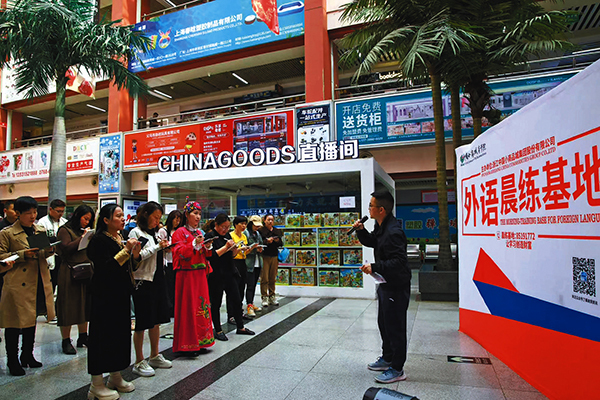 商城集團(tuán)相關(guān)負(fù)責(zé)人介紹,外語(yǔ)晨練培訓(xùn)已持續(xù)開(kāi)展19年,從滿足貿(mào)易環(huán)節(jié)語(yǔ)言的“剛需”出發(fā),幫助經(jīng)營(yíng)戶掌握一門甚至多門實(shí)用的外語(yǔ),且所有課程面向國(guó)際商貿(mào)城的全體經(jīng)營(yíng)戶免費(fèi),已累計(jì)培訓(xùn)市場(chǎng)主體超60萬(wàn)人次。