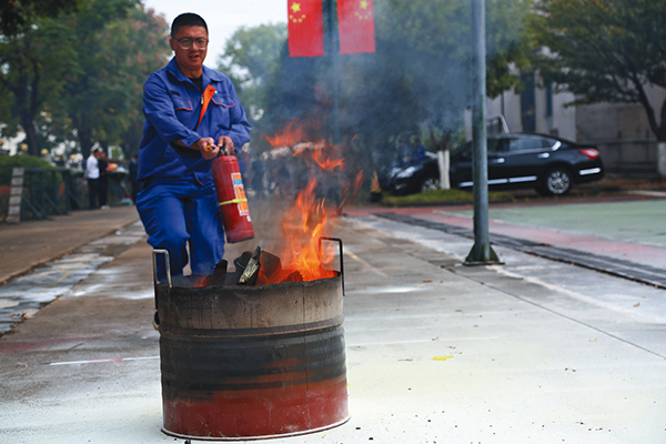 除理論學(xué)習(xí)外,實(shí)戰(zhàn)演練成為檢驗(yàn)行動成效的關(guān)鍵一環(huán)。在演練現(xiàn)場,參訓(xùn)人員分組進(jìn)行油盆滅火和疏散逃生體驗(yàn)。
